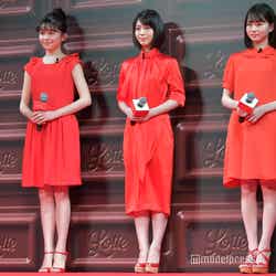 女優の浜辺美波がチョコレート菓子の新CMキャラクターに就任。5日、都内にてイベントが開催され、同じく新CMキャラクターの山田杏奈、久間田琳加と、タレントの渡辺直美と共に出席した。