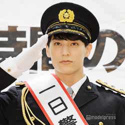 初めて身に着けたという本物の警察官の制服には「かっこいいですよね。着たことがないので」と嬉しそう。警察官の制服をモチーフにした衣装は着たことはあるそうだが「改めてちゃんと着ると、『カチッとはまるな』という気がします」と目を輝かせた。