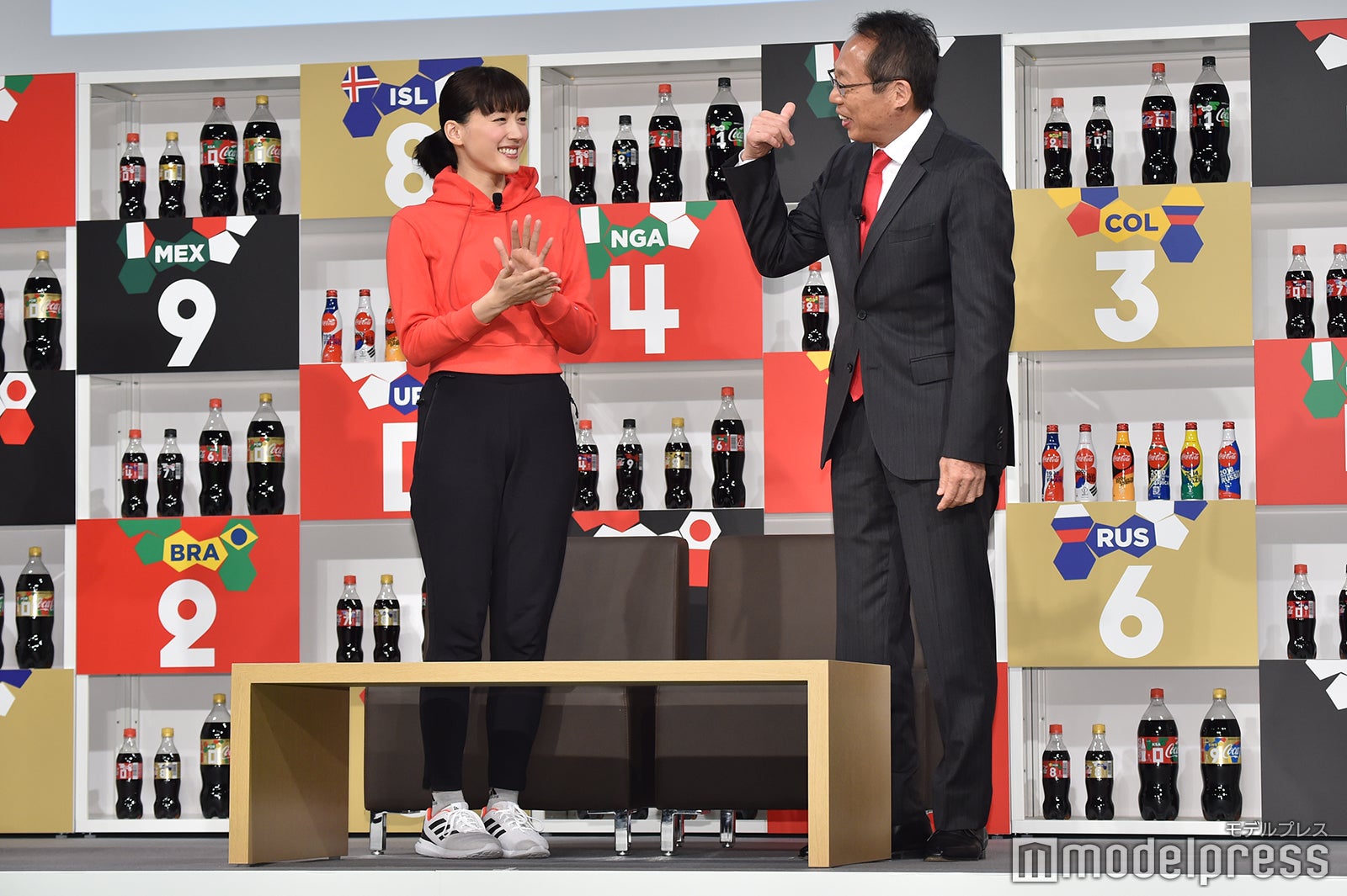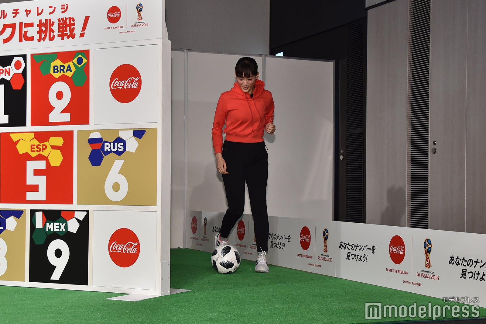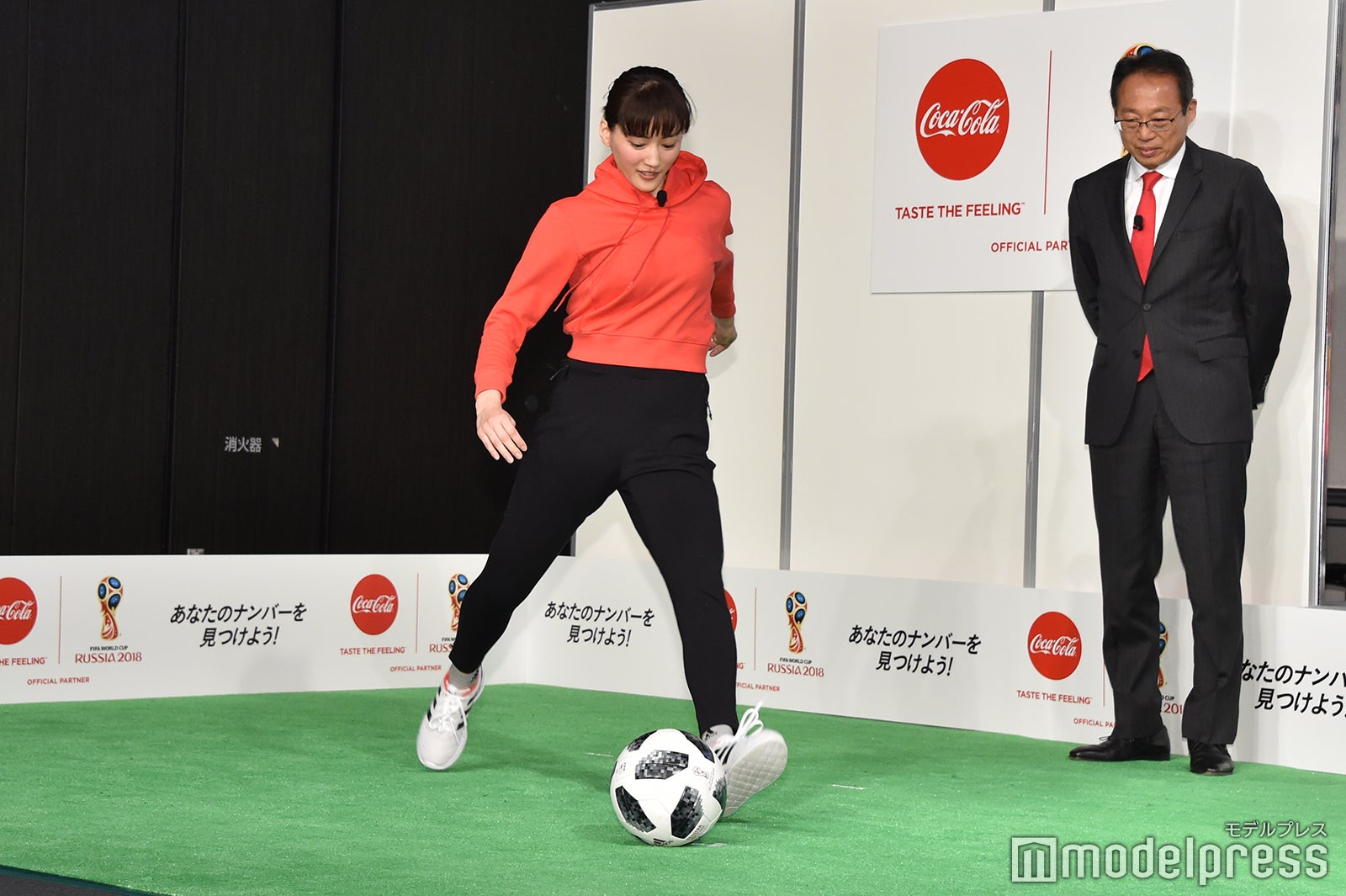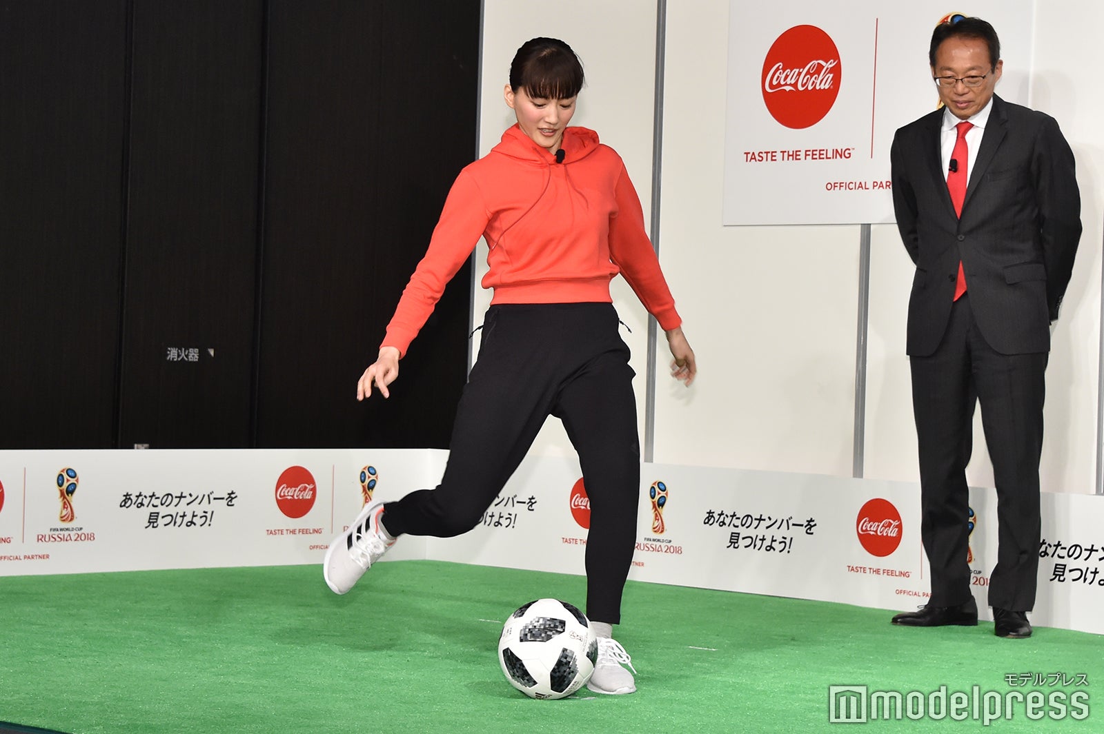 さらにイベントでは、同商品が2018FIFAワールドカップロシアを応援していることにちなみ、岡田氏のアドバイスのもと、綾瀬がフリーキックに挑戦する企画も行われ、綾瀬は数字が書かれた的の中から“5・0・9(コーク)”を蹴り抜くと宣言。最初に狙う番号を聞かれ、岡田氏から「9番がいいんじゃない。(下段なので)転がしていけば当たる」と難易度の低い数字をオススメしたが、綾瀬は「景気付けに5にしましょう」と岡田氏の助言をスルーして会場を沸かせ、岡田氏は「よく言うことを聞かない選手がいるんですよ…。お好きにどうぞ」と嘆いた。そして5回のチャレンジで綾瀬が“4・7・9”の的を蹴り抜くと、岡田氏は「ビックリしたね。リハのとき全然蹴れなかったのに、こんなに蹴れるようになるの?」と目を丸くすると、綾瀬は「飲み込みが早いみたいです」と胸を張った。さらに綾瀬は「もしかしてこれ、簡単なんですか?練習したらできそうですね」と調子に乗り、岡田氏から「あまりナメないでください。ビギナーズラックというものがあってね」と突っ込まれつつも、「初心者は(ボールを)浮かすのはそんなに簡単じゃないんですよ。ビックリしました」と舌を巻いた。