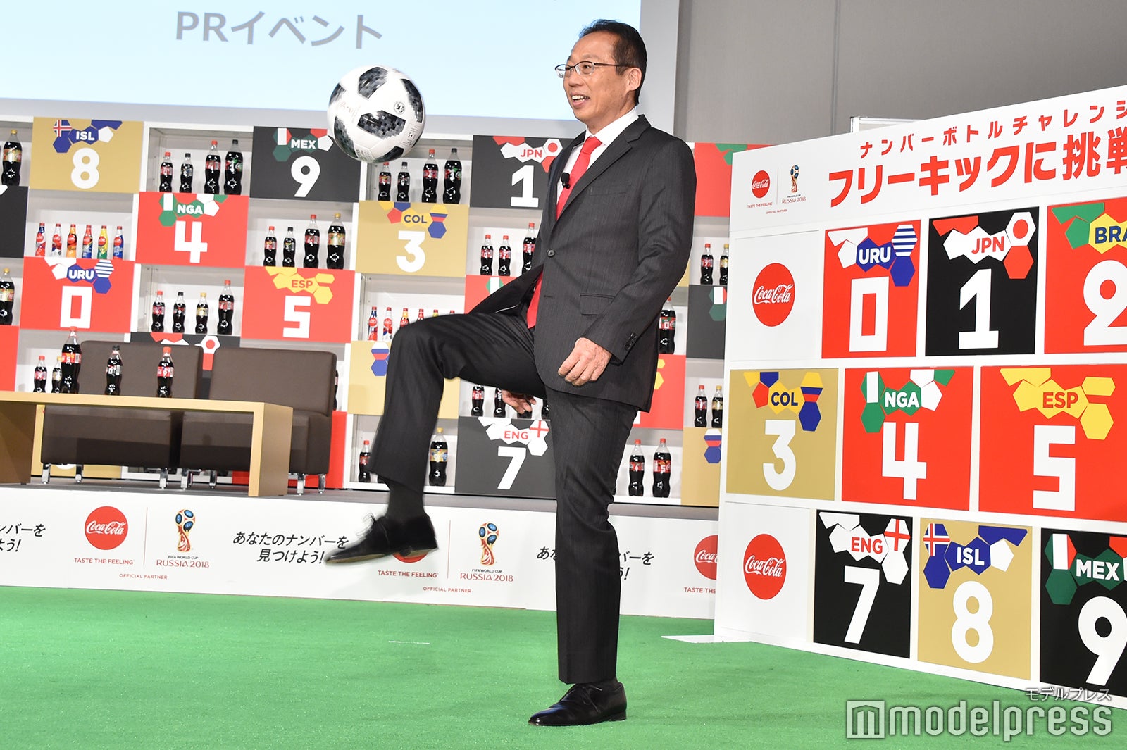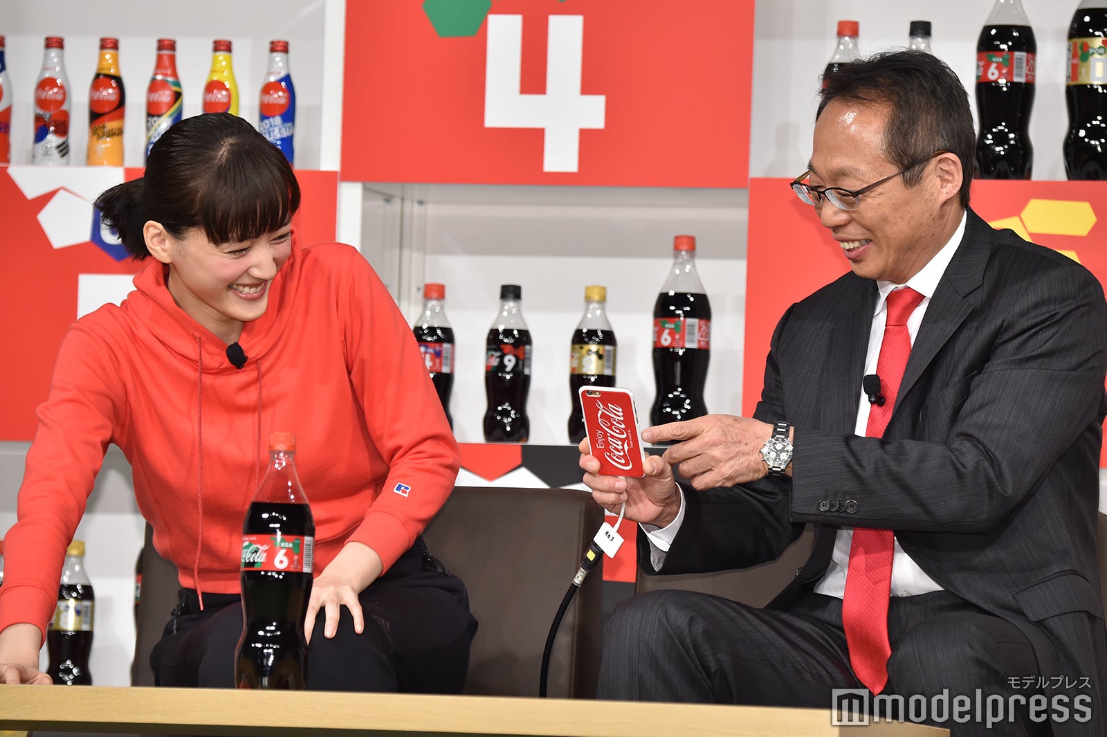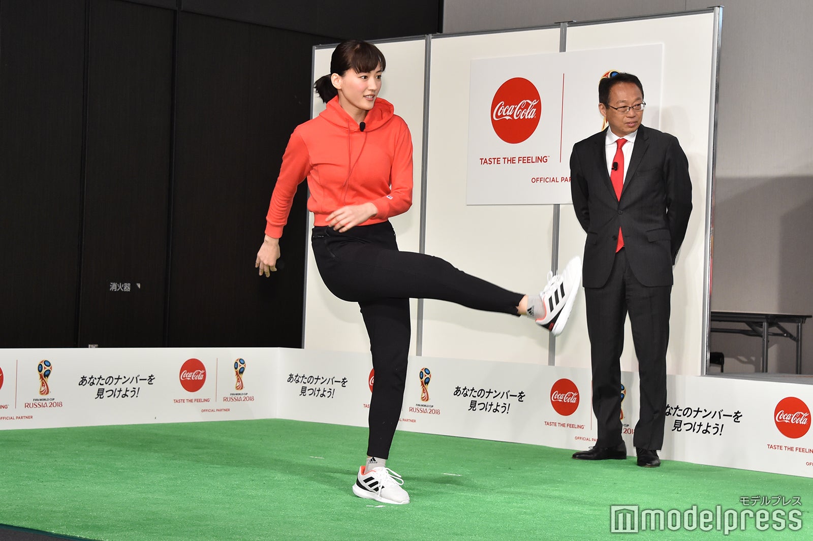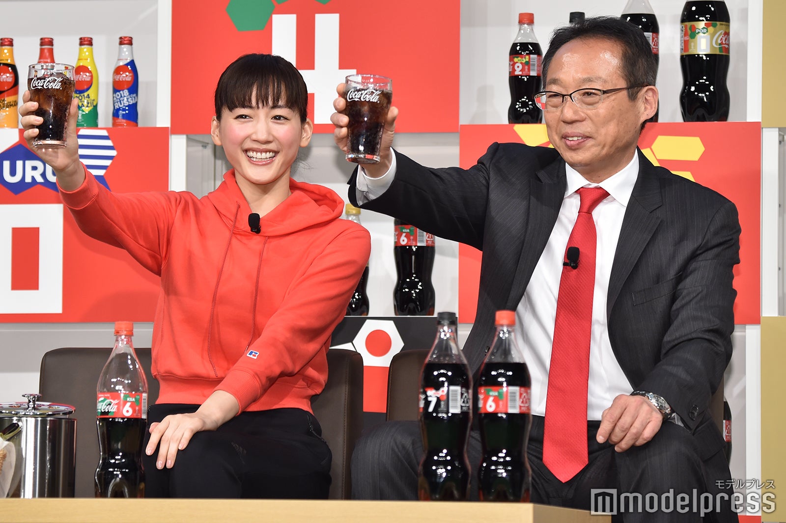 さらにイベントでは、同商品が2018FIFAワールドカップロシアを応援していることにちなみ、岡田氏のアドバイスのもと、綾瀬がフリーキックに挑戦する企画も行われ、綾瀬は数字が書かれた的の中から“5・0・9(コーク)”を蹴り抜くと宣言。最初に狙う番号を聞かれ、岡田氏から「9番がいいんじゃない。(下段なので)転がしていけば当たる」と難易度の低い数字をオススメしたが、綾瀬は「景気付けに5にしましょう」と岡田氏の助言をスルーして会場を沸かせ、岡田氏は「よく言うことを聞かない選手がいるんですよ…。お好きにどうぞ」と嘆いた。そして5回のチャレンジで綾瀬が“4・7・9”の的を蹴り抜くと、岡田氏は「ビックリしたね。リハのとき全然蹴れなかったのに、こんなに蹴れるようになるの?」と目を丸くすると、綾瀬は「飲み込みが早いみたいです」と胸を張った。さらに綾瀬は「もしかしてこれ、簡単なんですか?練習したらできそうですね」と調子に乗り、岡田氏から「あまりナメないでください。ビギナーズラックというものがあってね」と突っ込まれつつも、「初心者は(ボールを)浮かすのはそんなに簡単じゃないんですよ。ビックリしました」と舌を巻いた。