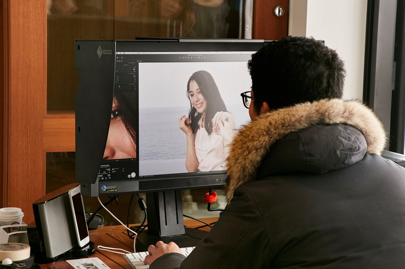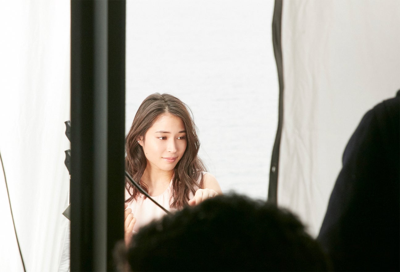 真冬の2月、静岡出身の広瀬には馴染みがあり、友人と遊びに来たこともある思い出の地・熱海で撮影。海に面したコテージにあるテラスからスタートした。