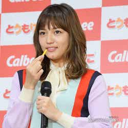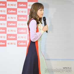 川口は、新CMに出演する“オシャレOL”の色鮮やかな衣装で登壇。同メーカーのCMに出演するのは高校生の時以来4年ぶりだそう。「まだ10代で学生の時だったので、コマーシャルに出演できると聞いたときに本当に嬉しかったです」と当時を振り返った。