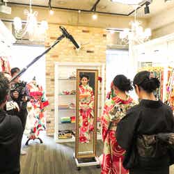 撮影は早朝からスタート。普段あまり着物を着ることが無いという久間田だったが、カメラが回ると、すぐに緊張もほぐれ、ファッションモデルとしての時間を忘れて着物選びに夢中になっていた。久間田琳加の起用理由は?