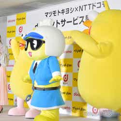 CMで共演しているポインコ兄弟の兄&マツポリちゃんのマスコットキャラクターが登場すると、満面の笑みで迎えた中条。「あれ、弟は?」とすぐに、ポインコ弟がいないことに気付き、中条が呼びかけると、ポインコ弟も登場。ゆるキャラたちが揃うと中条は、再び笑顔を全開にした。