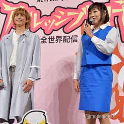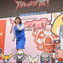 俳優の小関裕太とお笑いコンビ・南海キャンディーズのしずちゃんが18日、都内で行われたアニメ『アグレッシブ烈子』の全世界配信記念イベントに登壇した。