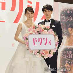 結婚情報誌「ゼクシィ」の新CM発表会が19日に都内で行われ、11代目CMガールに抜擢された女優・井桁弘恵(いげたひろえ/21)と、新郎役の俳優・細田善彦(ほそだよしひこ/30)が登場した。