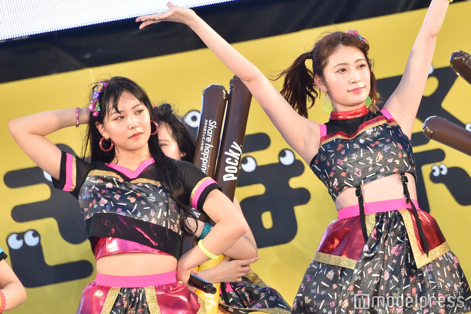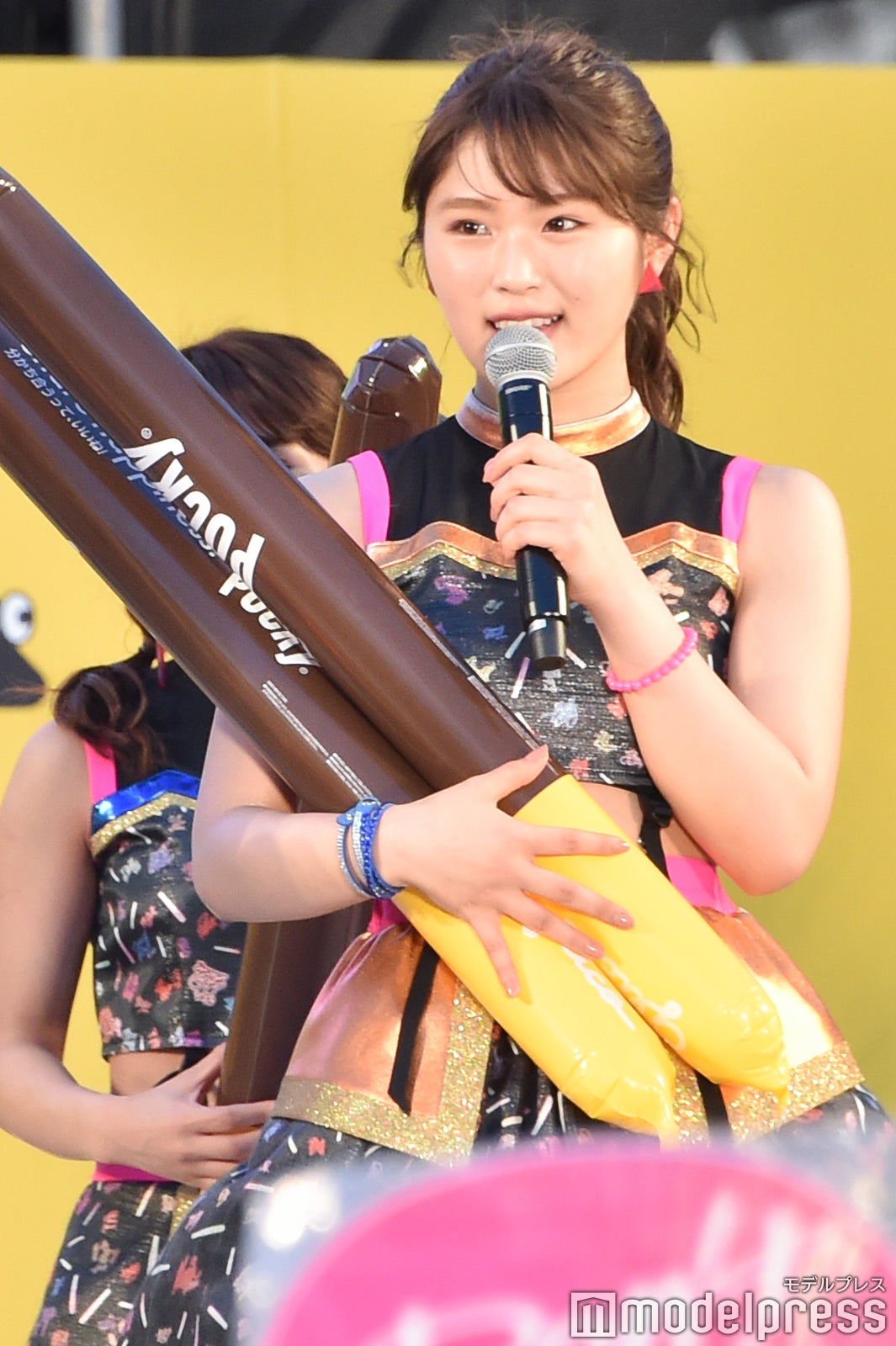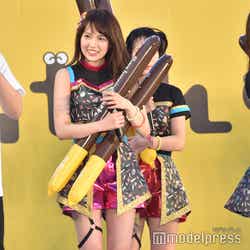 ほかにも、司会者の「女王様」という言葉に影響を受けて、“女王様ポーズ”を決めたり、持っていたバルーンをバズーカーに見立ててメンバーや観客に向けたりと、終始自由な白間。「後ろのモニターをご覧ください」という指示には、正面を向いたまま上体をそらして画面を見ようとするアクロバティックさも披露。トークも終わり、ステージを後にする際には、観客に笑顔で手を振りつづけ、最後には深くお辞儀をしてから捌けていた。(modelpress編集部)