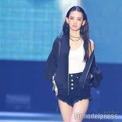この日は「EMODA」ステージにて、白のタンクトップに黒ショートパンツという持ち前のスタイルを際立たせたコーディネートで登場。笑顔を見せないクールなランウェイを披露した。