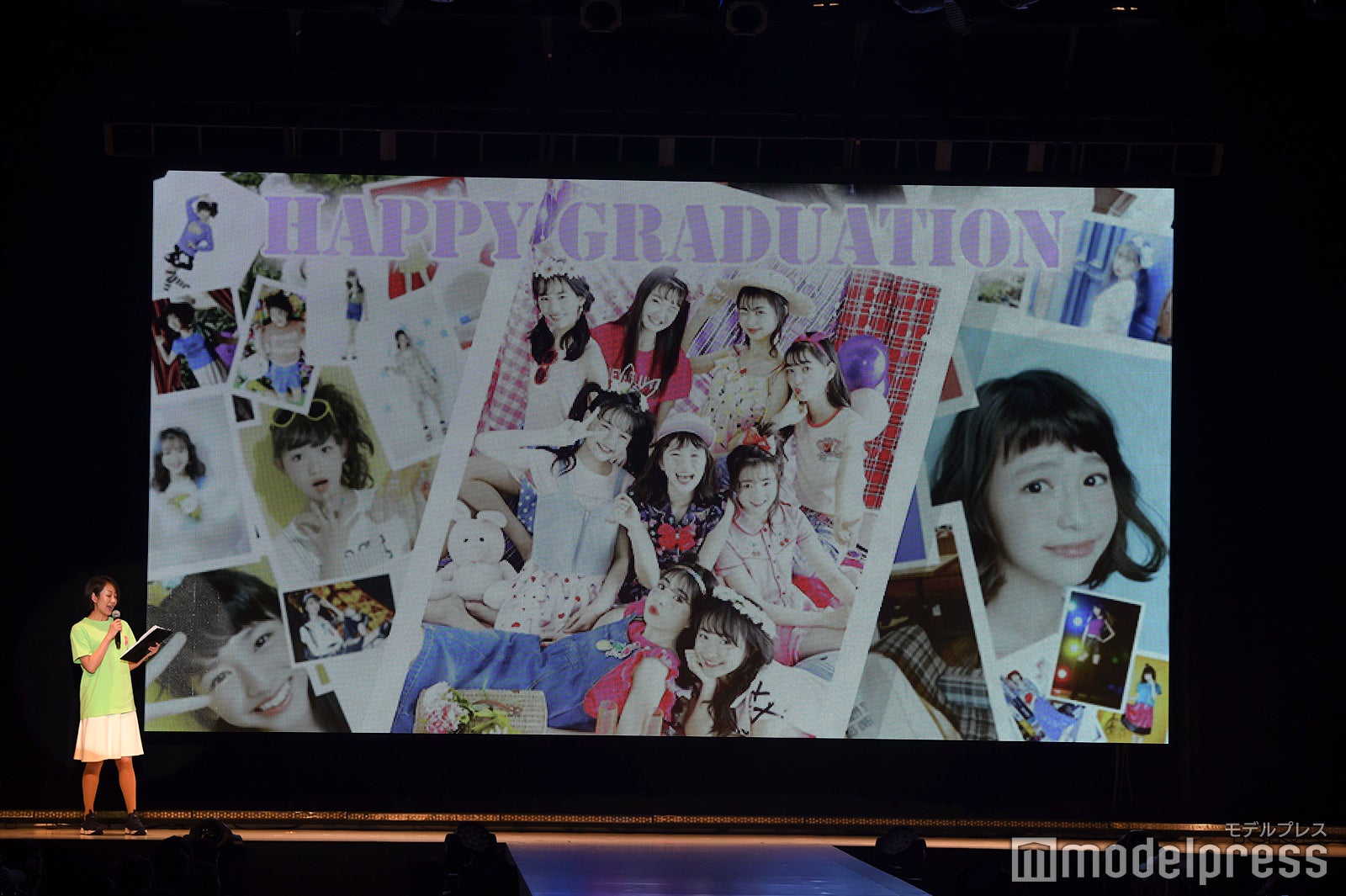 その後、プチモ代表の中田杏奈から「みんなとは本当に楽しい思い出ばかりです。そして、色々なことを教えてくれる本当に素晴らしい先輩たちでした。そんな優しくて可愛い大好きな先輩たちが卒業してしまうのは、悲しくて、寂しいけど、今までみんなが頑張ってくれた分もこれからは私たちが頑張っていきます。今まで本当にありがとうございました。これからもずっと、大好きです」と感謝と祝福の言葉を送られた卒業生たち。最後には、涙を流しながらランウェイを歩き、手を振りながらファンとの別れを惜しんだ。
