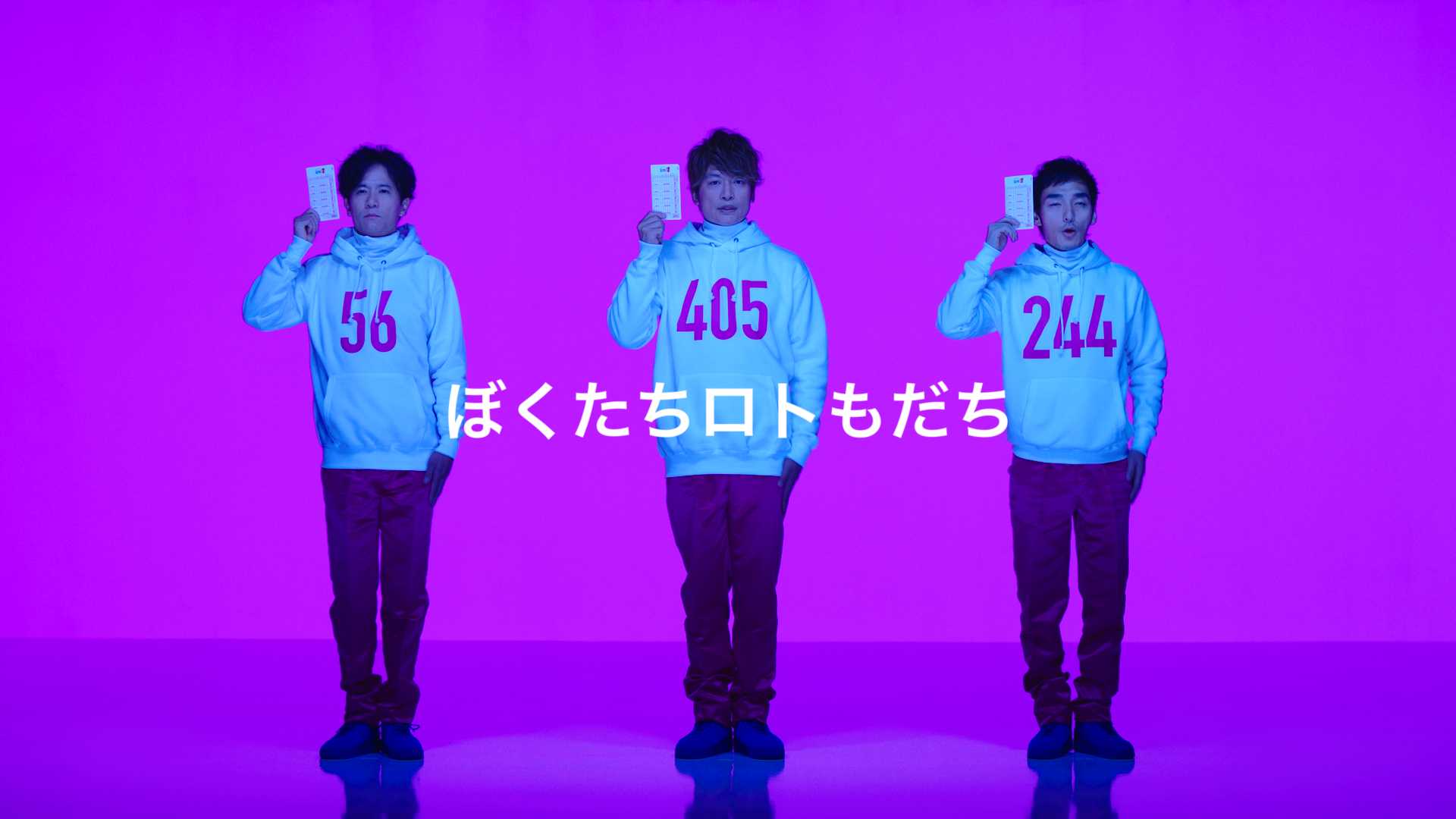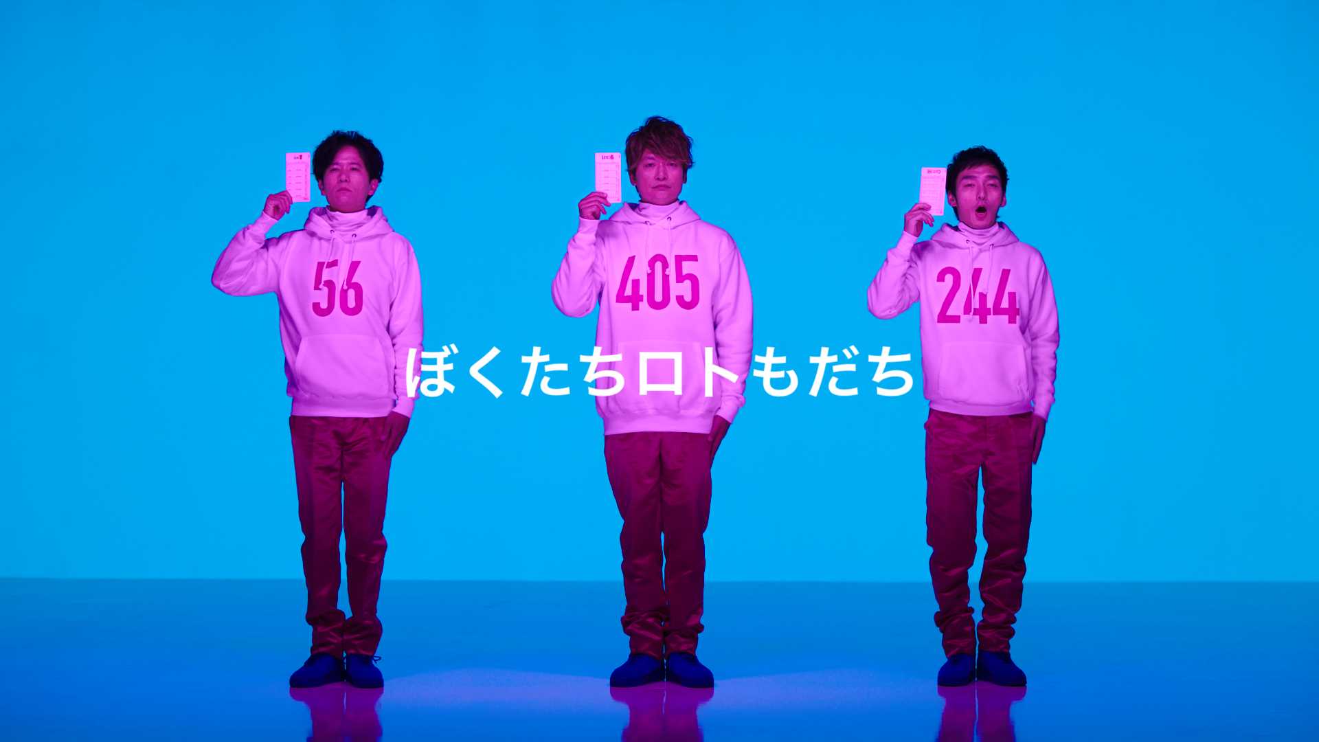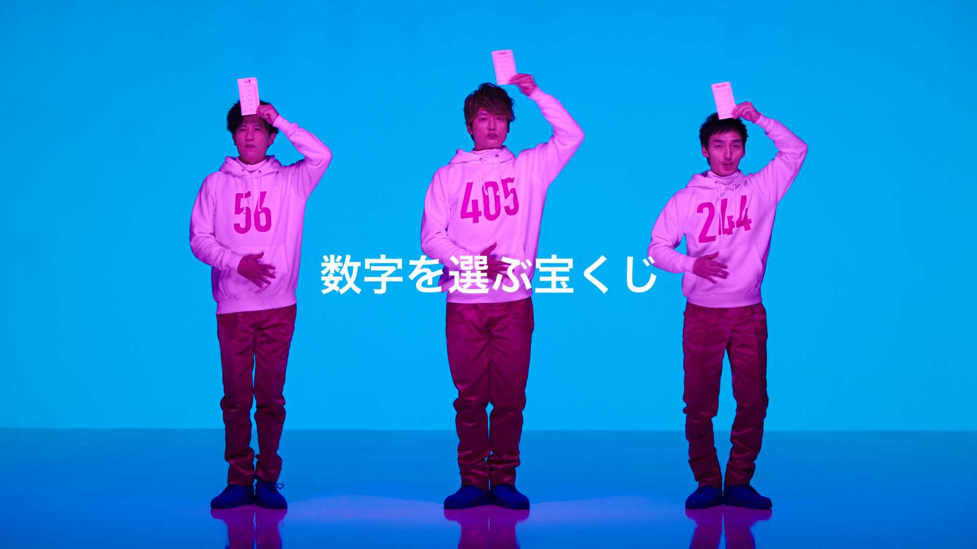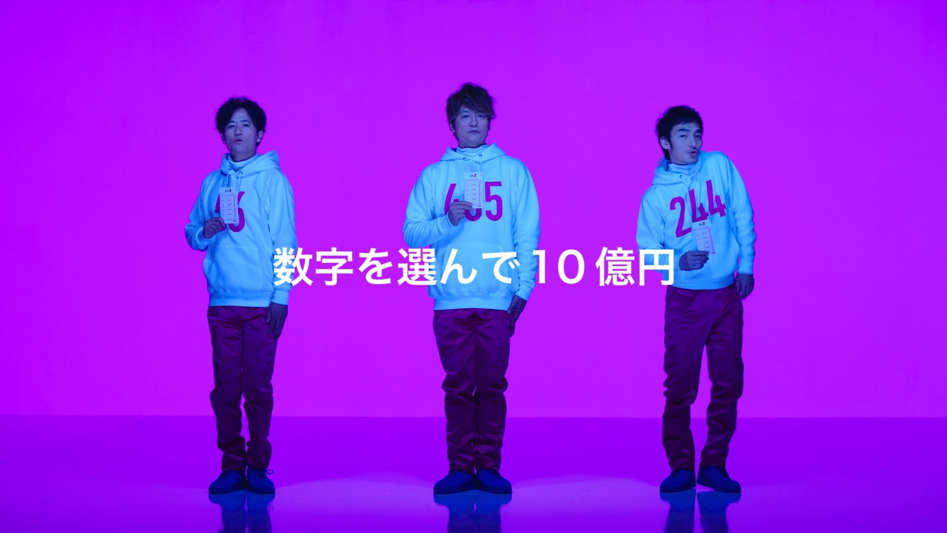 WEB限定「ナンバーズ4 WEB」篇では、3人合わせて10口(2000円分)を自腹で1点買いするという設定のもと、3人が相談しながら4桁の数字を決めていくリアルな過程をドキュメントで撮影。3人で決めた4桁の数字が決まると、今度は「もし当たったらどうする?」と会話が弾み、一獲千金の夢を膨らませていた。実際、インタビューでは「もし10億円が当たったら」という話に花が咲き、「劇場とかどう?カーネギーさんが建てたカーネギーホールみたいな」(稲垣)、「撮影やレコーディングができて、編集もできるスタジオとか。機材もいっぱいあるし、高いんだろうな(笑)。でも、スタジオ持っているって言うと、なんかカッコよくないですか」(香取)、「僕はヴィンテージカーとか、ヴィンテージのデニムとか。世界中の選りすぐりがいろいろ買えそうですね」(草なぎ)と想像していた。