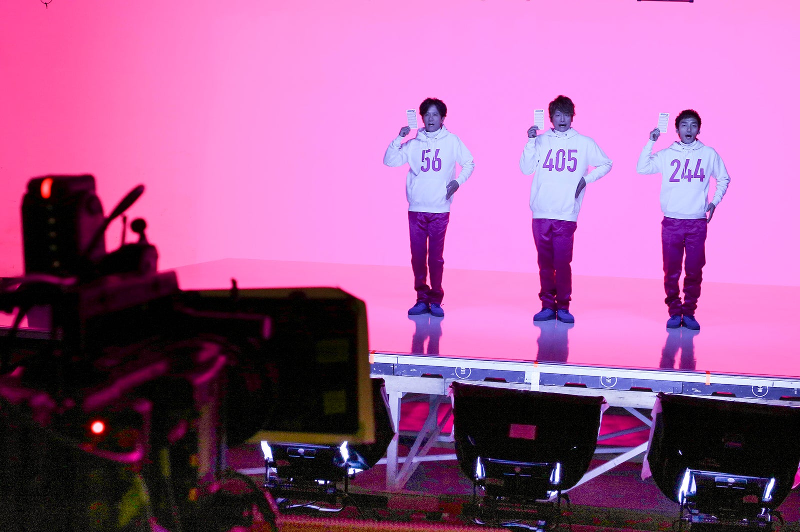 トークの合間に挿入されるダンスのシーンでは、3人ともファーストカットからキレキレの振付を披露。照明のカラーや歌詞、持ち物(申込カード)も変えながら、全部で20以上のパターンを撮影したが、ほとんど2、3テイク目でOKを獲得し、さすがのチームワークを見せつけた。