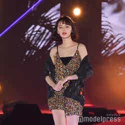 オープニングの「GUESS」ステージに登場した玉城は、ゴージャスなミニ丈のオールインワンにブルゾンを羽織ったコーディネートを披露。