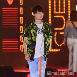 2度めのガルアワ出演となる古川。「GUESS」ステージに、カジュアルな夏シャツ×デニムパンツコーデで登場すると会場からは黄色い歓声が。