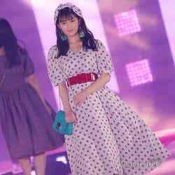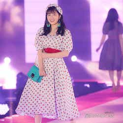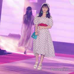 「GRL」ステージでは、赤のドットのワンピース、お揃いの柄の髪飾りで可愛らしさ満点スタイルで登場した大園。初ランウェイながら、堂々とウォーキング。照れた表情ではにかみながら満開の笑顔を見せた。
