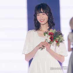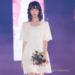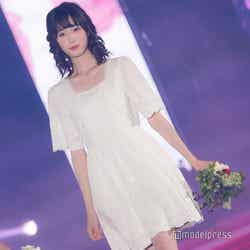 「evelyn」ステージでは、純白のワンピースを着こなし可憐な笑顔でランウェイをウォーキング。フレッシュな振る舞いで会場を魅了した。