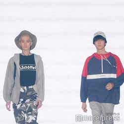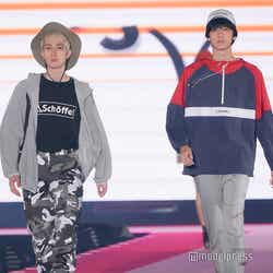 「Schoffel」ステージにモデルとして登場した2人。スポーティなコーデに身を包み、クールな表情でウォーキングを披露した。