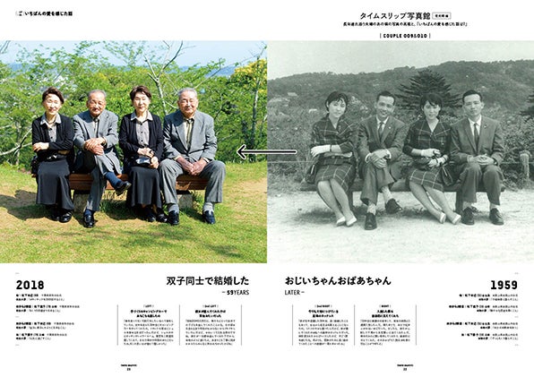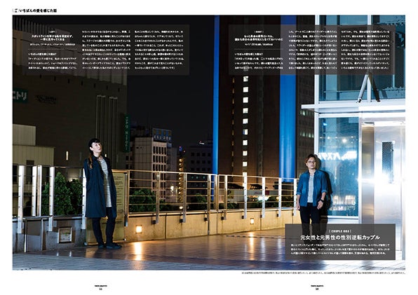 特集ページ『相手からの愛を最も感じた瞬間』では、交際歴25年のゲイカップルによる「顔はやつれ、ボロボロに破れたTシャツでサンフランシスコから会いに来た」「ゲイパレードに参加後、市役所で婚姻届を出したとき、思わず泣いてしまった」という話や、元男性と元女性の性別逆転カップルの「もっと長身の男性といたら、彼女も自分の身長を気にしなくていいのに」「ステージでスポットライトを浴びる私を否定しなかった」、体重差40kgのぽちゃ×痩せカップルの「“こんなデブと街を歩くのは恥ずかしいだろう”と思っていたのに」「“本当はつらい”とワンワン泣きじゃくっていた彼女」という様々なエピソードを掲載。このほか、初めてハグした高校生カップルから、20歳と61歳の年の差41歳カップル、同棲中の女の子×女の子カップル、アフリカのストリートで出会った国際カップルまで、総勢150組300人が写真とともに愛を語る。(modelpress編集部)