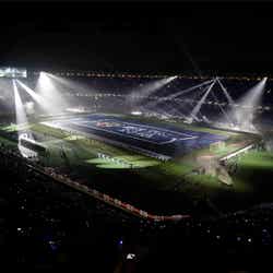 また、ウカスカジーのパフォーマンス後には、西野朗監督、SAMURAI BLUE(日本代表)らが再びピッチへ。この日、0-2で敗れた日本代表。西野監督は、結果に触れつつワールドカップ・ロシア大会へ「ワールドカップでは必ずいいゲームをし、皆さんの期待に応えられるように頑張っていきたいと思います」と意気込み。