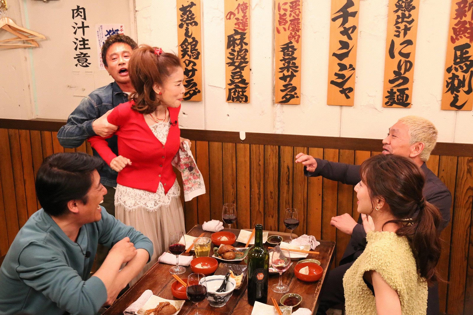ダウンタウン(浜田雅功、松本人志)と坂上忍の3人が、豪華ゲストたちとお酒を飲みながら本音で語り合う企画「本音でハシゴ酒」が人気の同番組。今回は尼神インター、寺島進、小柳ルミ子の3組をゲストに迎え、飲み仲間・田中みな実とともに先週に続き笹塚のお店をハシゴする。