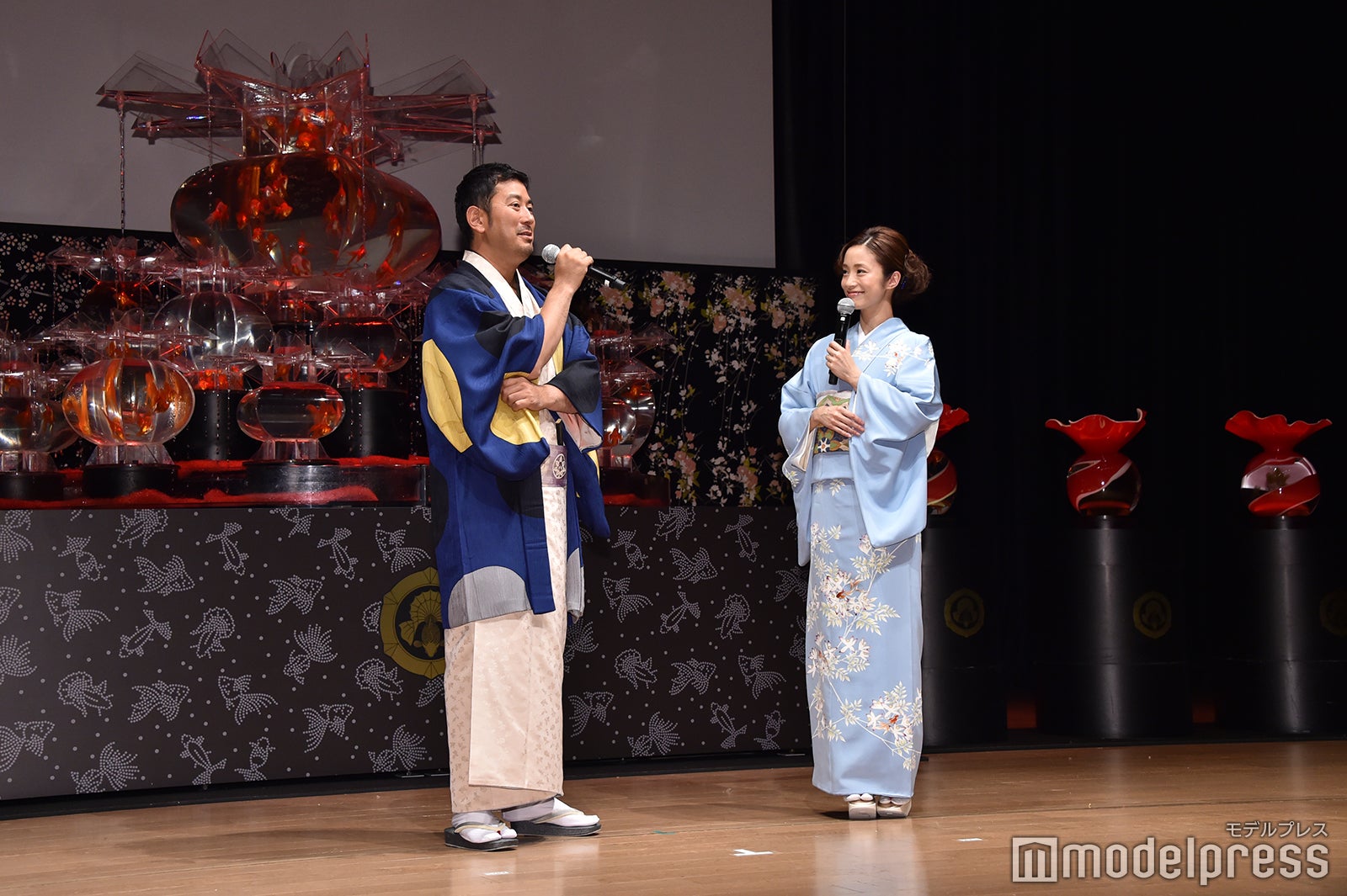 また、木村氏が作ったという季節を表す艶やかな着物を見にまとった上戸は「最近はアートアクアリウムのお仕事でしか着ていないような気がします。ピシッと日本女性になれた気がします」と笑顔を見せ、木村氏から「京都の最高峰の友禅で作ったものなんですけど、四季をさらに細分化すると二十四節気。それをさらに細分化して1年の季節を七十二候にする考え方があるんですけど、その七十二候の小満末候(5月31日~6月4日)の麦秋至(むぎのときいたる)という季節に合わせた花(センダン)をモチーフにしました。たった5日間しか着られないものです」と説明を受けると、上戸は「さっき調べたら5月31日から6月4日までしか着られない…。贅沢ですねえ」と舌を巻き、「涼しげなブルーで、着ていても夏が来るなあって感じがします」と目を輝かせた。さらに、過去のお気に入りの作品を聞かれると「着物にマッピングされて、その着物の前を金魚が泳いでいるものや、外国人が好きそうだなと思った切子の器で泳ぐ金魚が幻想的でかっこよかったですね」と明かした。(modelpress編集部)