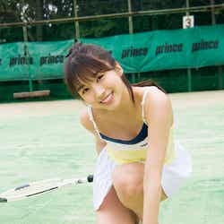 1st写真集「フィアンセ」(6月5日発売)の未公開カットを掲載。パリで“ひょっこり”する微笑ましい様子や、無邪気な笑顔、ドキッとする部屋姿、水着でのジャグジーショットなど、どれも魅力溢れるものばかりになっている。