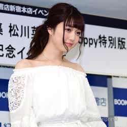私服のオフショルワンピースで登場した松川は、初めての囲み取材に「テレビでずっと見ていたのが実現した感じ。夢のようです」と笑顔。モグラ女子新世代“シンモグラ”として、グラビアでも活躍中の松川の、すらりと伸びた四肢、圧倒的なくびれ、女性も羨む美バストと美尻が詰まっている同作については、「グラビアのお仕事は何度かさせていただいていて。デジタル写真集というのも、そんなに数少ない中で、こうやって出させていただくのが、すごく嬉しいです」と話した。