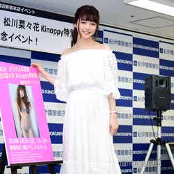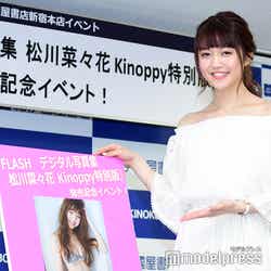 モデルの松川菜々花が3日、デジタル写真集「シンモグラストーリー」の発売を記念したイベントを開催し、報道陣の取材に応じた。