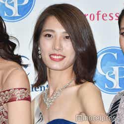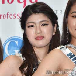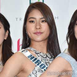アメリカ人の父と日本人の母を持ち、ハワイ生まれ日本育ちという大阪代表の三栖明日香さんは、「父がサーフィンをしておりましたので、私もサーフィンと自然が大好きです。グランプリを目指して一生懸命頑張ります」と意気込み、現在は関西空港インフォメーションで働いているそうで、具体的にどんな仕事をしているのか尋ねられると「関西空港のカウンターでお客様のご案内を差し上げたり、テレホンセンターでも対応も行なっております」「さまざまなお客様がいらっしゃるんですけれども、日本語や、中国語と韓国語を勉強しながら、お客様にわかりやすい案内はどういったものなのか、日々勉強させていただいております」とコメント。「関空に行ったら会えんですか?」と追求されると、「会えます(笑)。ぜひお越しください」と笑顔を見せた。美の面でほかの人よりも優っていると思う点と、特に地元で環境保全について意識していることを尋ねられた愛知県代表のインストラクター・岸渕紗江さんは「トレーナーをしていることもあって、体のラインをいかに女性らしくできるかを意識していて、それは誰にも負けないと自信があります。特に今流行っている美尻トレーニングを中心に教えているので、バックラインは自信があります」と胸を張り、「環境保全については、地域でゴミ拾いなどを中心におこなっておりまして、SNSなどを通して省エネやゴミの分別などを発信しております」と明かした。