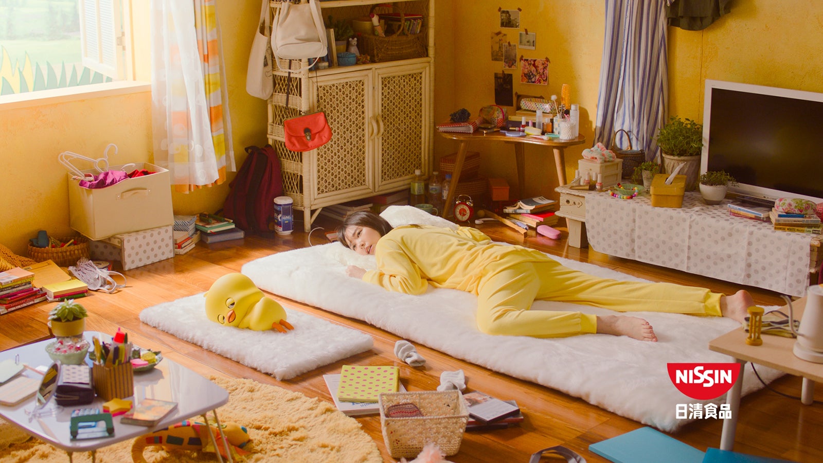 これまで元気な姿で同CMシリーズに登場していた新垣だが、今回はめんどくさがりでやる気の出ない女子「くで垣結衣」に。部屋の中でゴロゴロするぐで垣の隣にいるひよこちゃんも無気力で、やる気が無さすぎてCMの終わりには溶けてしまう。