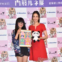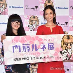 モデルの押切もえが8日、東京・松坂屋上野店本店で行われた「Roots of Kawaii 内藤ルネ展」(6月14日まで開催)のテープカット式典&記者会見に、アニメーターのMisako.Rocks氏とともに出席した。