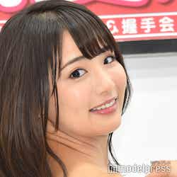 一方、Blu-rayの表紙を見ながら「お尻も結構セクシーな水着になっています」と解説。「いつもより大人っぽく撮ろうということで、ノーブラでドレスにパンツだけ履いて、ちょっとお尻をヒラヒラしたり、とってもしっとりしたシーンになっています」と打ち明けた。