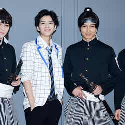 俳優の西銘駿、飯島寛騎、栗山航、塩野瑛久が、14日に都内で開催された『男劇団 青山表参道X』の旗揚げ公演「SHIRO TORA ~beyond the time~」の囲み取材とフォトコールに出席した。