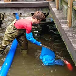 昨年12月に水抜きしたそうか公園の修景池。「残るもう1つの池の水を抜き、外来種を根絶したい!」とのことなので、田中とともに、AKB48の大家、加藤、峯岸、向井地、横山が参戦。水が抜けた池に1歩2歩と踏み入れると、膝より上まである泥に足を取られ、全く身動きが取れなくなるメンバーたち。それでも果敢に生き物のいる方へ進もうと泥の中でもがく内、胸や顔の辺りまで泥だらけに。ついには、泥の上を泳いで進むメンバーも。そうして、今回は1959匹、前回と合わせて5357匹の外来種の捕獲に成功した。 (modelpress編集部)