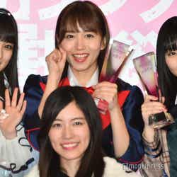 選抜メンバー (後列左から)古畑奈和、向井地美音、惣田紗莉渚、矢吹奈子、大場美奈、田中美久、高橋朱里、吉田朱里、本間日陽(前列左から)横山由依、荻野由佳、須田亜香里、松井珠理奈、(宮脇咲良は欠席)、岡田奈々、武藤十夢(C)モデルプレス