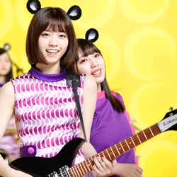 前回のCMに引き続き、楽器を使った撮影が中心となった今回。楽器が渡されると「お久しぶり!」と久々の楽器との再会に笑顔で撮影の準備をしていた。撮影が始まると、2回目の撮影ということもあり、楽器の扱い、動きも手慣れた様子のメンバーは、最初のテイクで全員完璧な演技を披露。これには監督も「おぉ!いいね」と驚いた様子で、「そうしたら、もっと色々やりたい!」と、目線を変える、動きを激しくするなど様々なパターンを撮影した。これは台本になかった動き方だったが、「最後のジャーンの部分どうする」など、メンバー全員で相談しながら、息の合った演技で次々とOKを取っていった。そして、今回から新メンバーとして参加した堀。初めての楽器の扱い方やテンポの速いCMソングでの撮影に最初は緊張した様子だったが、撮影が進むにつれ「楽器もかわいいですね」「マウスの耳もかわいい!」と笑顔になっていった。