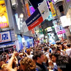 日本でも大きな盛り上がりを見せ、東京・渋谷のスクランブル交差点はサムライブルーのユニフォームを着用した人で埋め尽くされる熱狂ぶり。この日、試合終了後23時ごろには、渋谷駅前スクランブル交差点では、警察官数百人を投入し、事故やトラブル対策の警備にあたった。