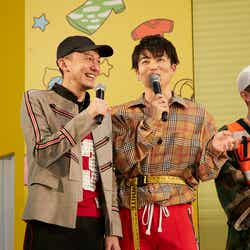 会場で待ちわびるファンたちの前に現れたDA PUMPは、クールなダンスで登場。続けて過去リリースした人気曲を披露すると会場は一気にヒートアップ、熱い空気感に包まれた。「ダサかっこいい」と話題の楽曲「U.S.A.」については、楽曲中の振り付けである「いいねダンス」と「驚異のインベーダーフォーメーション」を来場者にレクチャー。サビの「C'mon, baby アメリカ」では、レクチャーで教わった振り付けで会場は大盛り上がり、“ダサかっこいい”パフォーマンスでフロアを大いに沸かせた。