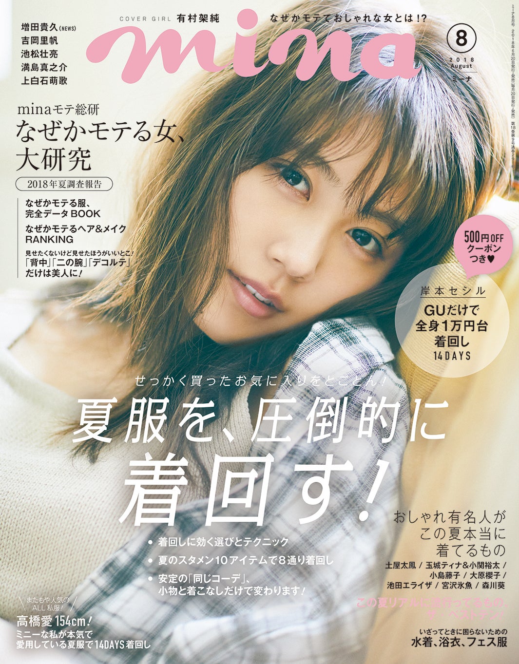 女優の有村架純が、発売中の雑誌「mina」8月号に登場した。