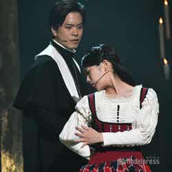 合計で10曲以上ジャニーズ楽曲を披露する構成で、曲目はフォーリーブス、少年隊、近藤真彦、SMAP、Kinki Kids、嵐、Hey! Say! JUMP…と大先輩から後輩グループの楽曲まで、時代を越えて愛される名曲ばかり。ロミオとジュリエットが出会う仮面舞踏会のシーンでは少年隊の「仮面舞踏会」、2人が愛を誓うシーンは嵐の「愛を叫べ」…と物語とシンクロした内容。ソロで歌唱したり、ヒロインの二宮と見つめ合いなあがらロマンチックにデュエットしたり、劇中劇でマキューシオ役の長澤と息ぴったりに歌い上げたりと、歌・ダンス・芝居で魅せた。