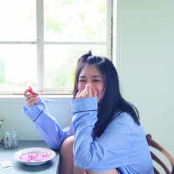 2枚目は、“彼のパジャマを借りちゃった”風の大きめサイズのパジャマを着た長濱が、いちごミルクを食べているカット。実際にいちごを潰しながら食べた長濱は「おいしい」とお気に入りの様子。素っぽい笑顔も必見だ。今誌には、この長濱の「寝起きねる」を始め、菅井友香、守屋茜、渡邉理佐、渡辺梨加との「デートなう」や、ひとり1P責任編集ページまで、欅坂46メンバーのいろんな顔が詰まった一冊になっている。