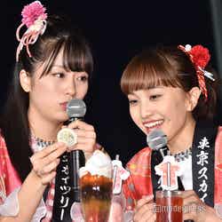 東京スカイツリーでは、2018年7月17日~9月2日の期間、ももクロの結成10周年を記念しコラボ企画を開催。この日、別の企画で新大阪駅から東京駅までモノノフ(ファン)とともに“ももクロ新幹線”に乗車し、車内アナウンスや写真撮影などを行ったという4人。百田は「前回、スカイツリーでイベントをやらせていただいたときに、今1番やりたいことを聞かれて『新幹線の車内アナウンスがしたいです』って言ったので、こんなに早く夢が叶うと思っていなくて、すごく嬉しかったです」と目を輝かせたが、玉井は「でも、リーダーが以前(新幹線に)乗ったときに、車内アナウンスで『左手に富士山が見えます』ってアナウンスを聞いて、それをやりたいって言っていて、今日ついに富士山を紹介するアナウンスができたんですよ!でも、左手を見たらお天気が悪くて富士山が一切見えなかったっていう…(笑)」とエピソードを明かして笑いを誘った。