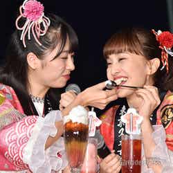 このほか、同コラボイベントで楽しめるカフェメニューを紹介するコーナーでは、百田と佐々木がイチャつきながら試食をする場面も。佐々木は「デート気分で楽しんでいます」と声を弾ませ「夜景が綺麗だね」とコメントすると、百田は「あーりんの方が綺麗だよ!」と返して、会場に集まったモノノフから歓声を浴びた。これに玉井と高城も負けじとイチャつきはじめ、玉井が「れにちゃん、夜景が綺麗だね」と声をかけると、高城は「詩織の方が綺麗だよ!」と玉井を見つめていた。(modelpress編集部)