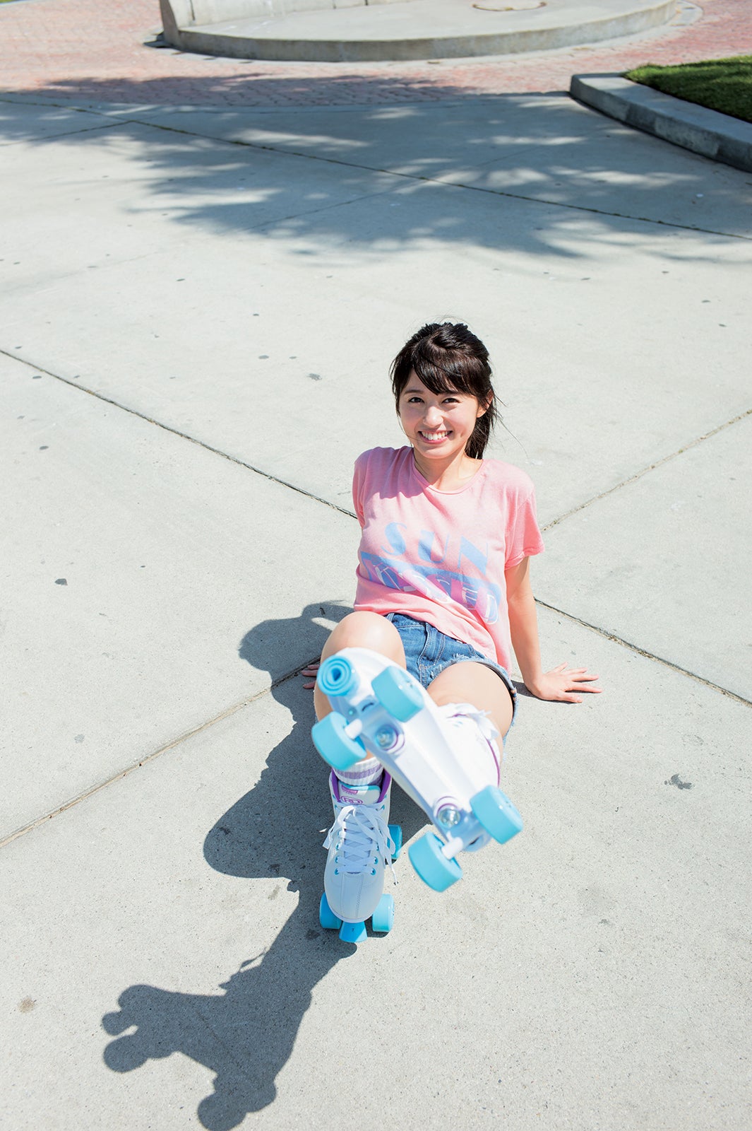 大胆ビキニの水着姿やランジェリー姿も初披露している逢田は、グラビアを観て研究し、約2か月間、走り込みをした後に筋トレで腕や下半身などを鍛えたそう。「水着でのポージングを今までやったことがないので分からなくて、そういった面で研究などはしました」とコメント。「でも、現場に行ったら何も考えずにナチュラルに撮らせていただきました」と笑顔を弾けさせた。