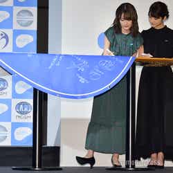 2人は他のサポーターがすでに書き込んだフラッグにその場で「まずは検診へ」とメッセージを記入。若月は「一番の大事なポイントかなと。まずは見つけない限りは何も起こせないので、身近な病気として皆が自覚する、そういうことをやっていった方がいいのかなと思って書きました」とメッセージの意図を説明し、フラッグをお披露目した。