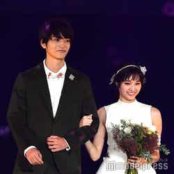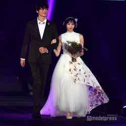 新川優愛、ウエディングドレス姿で美背中あらわ 山本涼介と腕組み2ショット<TGC富山2018>