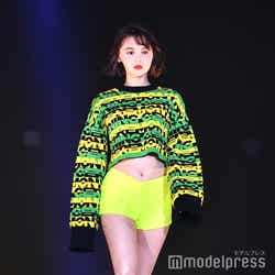 「TGC富山2018」スペシャルコレクションのラストに登場した玉城はミニ丈のロングTにショーパンをあわせたネオンスタイルを着こなし。トップスからはお腹をチラりとのぞかせ、スラリ美脚をあらわに会場を魅了した。