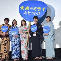 アニメーション映画「未来のミライ」の公開初日舞台あいさつが20日、都内で行われ、声優を務める星野源が上白石萌歌、黒木華、麻生久美子、細田守監督と登壇。この日キャスト陣、監督は涼し気な浴衣姿で登場し、星野は濃紺のシンプルな浴衣を着こなした。竹野内豊&佐藤健:「義母と娘のブルース」制作発表会見