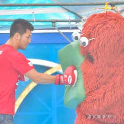 そして、スペシャルゲストとしてボクシング村田諒太選手と、イベントの目玉企画「お台場スポーツパーク」のナビゲーターを務めるガチャピン・ムックも登壇。ガチャピンの「村田選手が来ているのでボクシングがみたいな~世界を制したパンチがみたい」というお願いから、ムックを相手にミット打ちを披露。すると、ここでも佐野アナから「まだちょっと時間あります?もう1人行きます?アナウンサーの中でスカッとしたい人…谷岡!」と谷岡アナに無茶ぶり。会場から「無理しないで~」の声が飛ぶ中、村田選手の連打を浴び「もう…すごいですね…」とヘロヘロの谷岡アナだった。