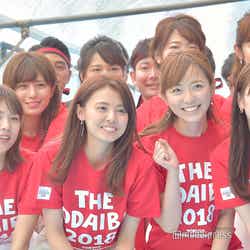 小雨が舞う中行われたセレモニーは、同局の男性アナからなる「四代目オマツリ男アナ」(榎並大二郎、立本信吾、木下康太郎、谷岡慎一、生田竜聖、酒主義久、木村拓也、大村晟、内野泰輔、上中勇樹、藤井弘輝、安宅晃樹、黒瀬翔生、今湊敬樹、大川立樹)による太鼓パフォーマンスからスタート。鍛え上げられた四肢と、雄々しい掛け声、そして力強い太鼓の音で観客を魅了した。「お台場ワンガン娘’18」も登場