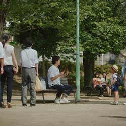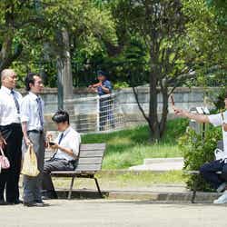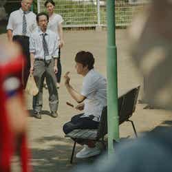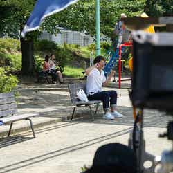 撮影が行われた7月下旬の神奈川県内。朝から記録的な猛暑に見舞われ、キャストやスタッフは熱中症や体調管理に配慮しながら進行した。緊張感や暑さにより大人でもハードに感じる環境の中、エキストラの中には未就学の少年の姿。すべり台から香取とやりとりする重要な役の少年は、疲れがピークにさしかかりながらもしっかりした演技が要求され、心がくじけそうになる場面も。